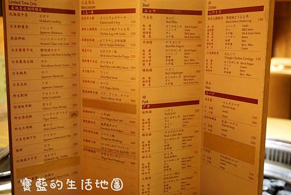 拉開後,就是整個Menu,一面是肉品/海鮮/湯品等;另一面是飲品/酒類