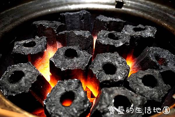 阿母說很特別的炭火,下面是瓦斯開火,讓炭火比較快可以燃燒起來