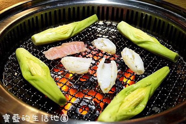 一坐上位子後,服務生就開始起火爐,等待火爐可燒烤前,先上高麗菜絲讓我們享用