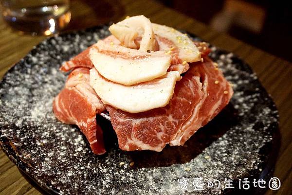 椒鹽松阪豬來不及照剛上桌的樣子,就立馬讓我們放上烤盤準備呷